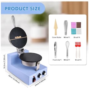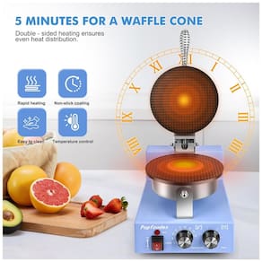 A máquina para casquinha de sorvete comercial POPFOODEX é um equipamento elétrico profissional com aquecimento independente em ambos os lados, projetado para sorveterias, cafés e estabelecimentos de sobremesas. Possui placa redonda antiaderente de 20 cm com dupla camada de Teflon e controles ajustáveis de temperatura (50-300°C) e temporizador (0-5 minutos), com alarme sonoro.