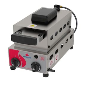 Projetada para trabalhar com gás de baixa pressão, ela possui 6 cavidades que permitem produzir até 90 unidades por hora, garantindo alto rendimento para lanchonetes, quiosques, cafeterias e eventos. Conta com botão Liga/Desliga e termostato de segurança, oferecendo praticidade e segurança no uso.