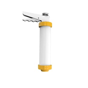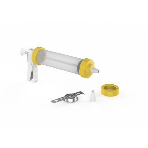 Máquina de confeitar para decorar bolos, tortas, doces e salgados. Desenvolvida para substituir o saco de confeitar, dando mais produtividade e ergonomia à confeitaria. Tubo aplicador que se adapta aos bicos da marca Wilton.