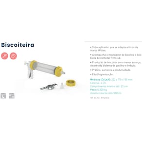 • Acompanha o modelador de bicoitos e dois bicos de confeitar 1M e 4B.