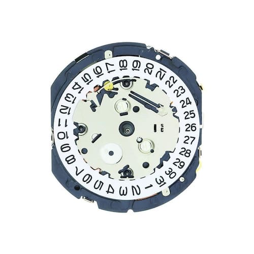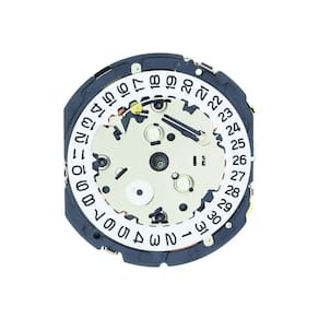 YM85 Epson Multi-Function Chronograph é um movimento de 3 ponteiros hora/minuto/varrer segundos com 3 indicadores e uma janela de data na posição das 3 horas. O indicador na posição das 6 horas é um contador de 0 a 100 minutos, o indicador na posição das 9 horas é o pequeno ponteiro dos segundos registra até 60 segundos e o indicador na posição das 12 horas registra os minutos 0 a 10. Este movimento masculino é um movimento de 12 linhas, as dimensões são 24,00 mm x 27,60 mm com uma espessura de 3,70 mm. As dimensões da mão são 110/65/21/21 h/m/s/indicadores . Ean: 7908289212639