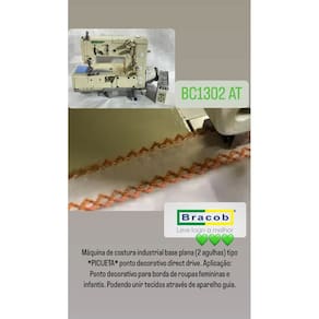 BC1302AT Picueta, 2 agulhas, 2 loopers, 4 fios, ponto 3.7mm, 3500ppm, agulha uox163, altura do calcador 5mm, lubrificação automática, com motor Direct drive, 220v, Máquina de costura industrial picueta base plana, para borda de roupas femininas e infantis.