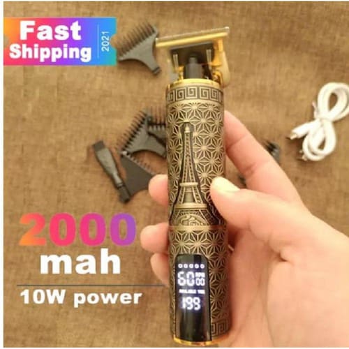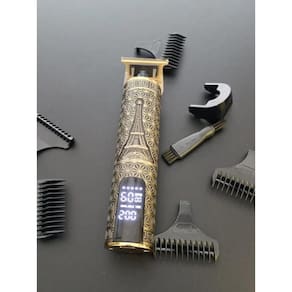 DescriçãoBarbeador De Cabelos Clipper T9 Elétrico Design ParisOutras característicasVisor: DIGITAL COM BATERIAFunções: Cortador de cabeloTipo de alimentação: usb É sem fio: SimÉ apta para viagem: SimÉ apta para bebês: NãoInclui bateria recarregável: SimDescrição1. Única lâmina super afiada em forma de T para cortar o cabelo com segurança e rapidez. Você pode criar vários penteados retrô.2. O desempenho poderoso do motor de cobre puro é estável e confiável3. Aparência requintada, Caveira e fênix e padrão T-Blade.4. Bateria embutida, longa vida útil. Adequado para carregamento por USB.5. 2,5-3 horas de tempo de carregamento rápido; uma carga pode durar 120 minutos.6. Cabeça de cerâmica de titânio7. Ferramentas profissionais de barbeiro para uso doméstico. Adequado para cabeleireiros, homensParâmetro:Marca ShinonCor: Dourada CaveiraBateria: 1200mAhPotência: 5WMétodo de carregamento: carregamento USB elétricoTempo de carregamento: 3 horasUse o tempo: 2 horasMétodo de carregamento: CarregadorTensão: bivoltPeso: 0,4 kgTamanho: 152mm 32mm