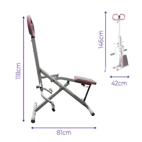 Características do produto: - Material: Estrutura em aço + plásticos reforçados - Função 2 em 1: Com essa máquina, você pode praticar agachamentos e remo, fortalecendo glúteos, coxas, abdômen, costas e ombros em um só aparelho. - Resistência ajustável: Modifique o nível de resistência para deixá-lo do jeito certo para você, seja iniciante ou avançado. - Máquina dobrável: A máquina dobra rapidamente para facilitar o armazenamento e o transporte. - Monitor LCD integrado: Monitore seu tempo, suas repetições e suas calorias queimadas. - assento Ergonômico: Assento acolchoado, garantindo conforto e segurança. - Apoios de pé com textura antiderrapante.
