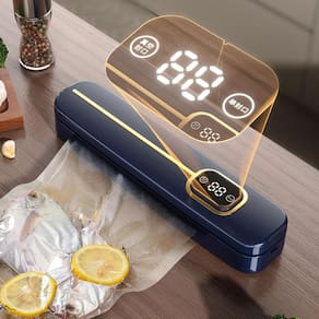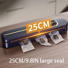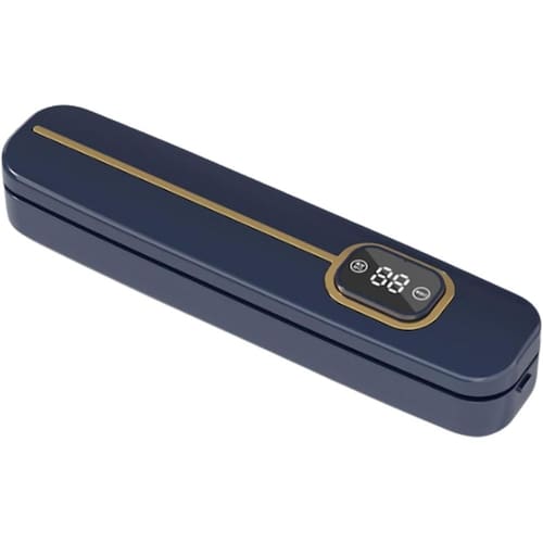 Especificação Material: Plástico Cor: Azul Peso: 690g Tamanho do produto: 33x7,5x5,8 cm Lista de embalagem: 1 x Máquina de selagem a vácuo Vedação a vácuo poderosa - A potência de sucção de até 60 kPa garante uma vedação hermética para preservar o frescor e o sabor. Display LED digital - O cronômetro de contagem regressiva digital claro mostra o progresso para uma operação fácil e precisa. Operação totalmente automática - função de um toque para selar e aspirar, adequada para alimentos secos e úmidos. Design compacto e estiloso — O corpo elegante que economiza espaço com detalhes dourados elegantes se encaixa em qualquer cozinha moderna. Conjunto inicial completo — vem com 10 sacos a vácuo reutilizáveis, ideais para armazenamento de carnes, vegetais e preparação de refeições.