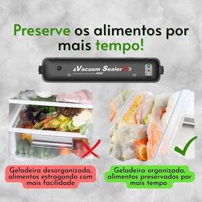 Geladeira bagunçada Alimentos estragando rápido A solução está aqui Organização e preservação dos alimentos estão ao seu dispor com a nossa seladora portátil. Sua tecnologia foi feita para que os alimentos durem 8x mais, assim você evita desperdícios e seu bolso agradece