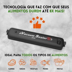 - possui um temporizador de selagem por calor controlado, totalmente automatizado, te dando ainda mais praticidade. - perfeita para alimentos, estudos comprovam que armazenar a vácuo ajuda reduzir a deterioração em até 8 vezes -mantenha os alimentos muito mais frescos, preservando o sabor e organização. -pode ser utilizada para armazenar diversos outros tipos de itens, como: roupas, acessórios, jóias, itens colecionáveis, etc...