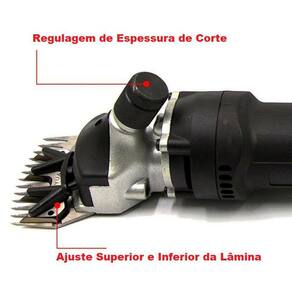 Tosquiadeira Máquina de Tosar KaQi SG-6176. Voltagem 220v. Seis Níveis de Velocidade. Regulagem de Espessura de Corte. Surpreenda-se com a super Tosquiadeira Máquina de Tosar KaQi SG-6176. Voltagem 220v. Indicada para aparar e cortar pelos de ovelhas, carneiros, ovinos, caprinos, lhamas, aplacas. Equipado com um poderoso motor de 550 Watts de potência, de alta velocidade, sistema easy-start partida suave , chave seletora on/off, 6 ajustes de níveis de velocidade 0 a 2400 RPM e regulagem de espessura de corte, além de empunhadura ergonômica. Ideal para tornar a operação de tosa mais rápida e fácil no dia a dia. Acompanha duas lâminas universais de corte, sendo uma superior com 4 dentes, e outra inferior com 13 dentes. Devido a seu sistema de encaixe, pode ser utilizada lâminas de outras marcas do mercado. Conta ainda com sistema para ajuste da tensão, permitindo regular espessura do corte. Também segue com uma maleta para transporte e para organização do equipamento, além de seguir com 1 kit ferramentas, bisnaga para lubrificante, pincel para limpeza, manual de instruções. Características: Voltagem 220v. Tosquiadeira Máquina Tosar KaQi 550 Watts. 6 Níveis de Ajuste de Velocidade. Velocidade: 0-2400 RPM. Sistema de Partida On/Off. Regulagem de espessura de corte. Ajuste de tensão das lâminas. Corpo robusto e resistente. Tela de ventilação removível para fácil limpeza. Comprimento do cabo elétrico: 1,90m. Medidas da Tosquiadeira: 35 x 10 x 5cm comprimento x altura x largura . Medidas da Caixa: 45 x 20 x 12 cm comprimento x altura x largura . Peso: 4kg. Conteúdo da embalagem: 1 Tosquiadeira KaQi SG-6176 / Voltagem 220v. 1 Cabeça de Tosquiadeira já instalada . 1 Lâmina Superior 4 dentes. 1 Lâmina Inferior 13 dentes. 1 Chave de Fenda. 1 Chave Philips. 1 kit escova carvão já instalado . 1 Kit extra de escovas do motor carvão . 1 Bisnaga para lubrificante. 1 Maleta de Transporte. 1 Manual de Instruções.