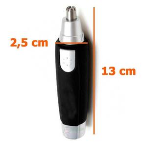 - Aparador de pelos do nariz e orelha, prático, Leve e portátil - Extrema precisão de corte devido a lâmina de Alta eficiência. - Possui corpo emborrachado e tampa protetora da Lâmina para sua segurança e suavidade. - Apare de forma precisa e uniforme. - Alimentação: 1 Pilha AA (Não Inclusa) - Dimensão (D x A): 3 x 13 cm - Peso Líquido: 43 g/ 1.52 oz - Cor: Prata com preto