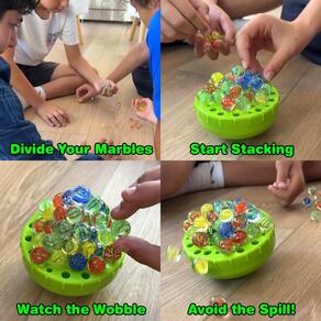 WobbleBall é um jogo emocionante de equilíbrio de mármore, perfeito para crianças, adolescentes e famílias. Os jogadores se revezam colocando bolinhas de gude em uma base inclinada que balança a cada movimento. O objetivo? Seja o primeiro a se livrar de todas as suas bolinhas de gude sem causar derramamento! Fácil de aprender, divertido de jogar e infinitamente emocionante. Perfeito para noites de jogos, festas e desafios rápidos. - Inclui 50 bolinhas de gude de gude – Jogo de equilíbrio emocionante de mármore – Pronto para um bom momento oscilante? Inclui 50 bolinhas de gude de vidro! Os jogadores se revezam colocando-os cuidadosamente em uma base inclinada. Um movimento errado e as bolinhas de gude caem! Diversão para crianças, adolescentes e noites de jogos em família. - Desafie sua precisão e habilidade – Fácil de aprender, divertido de jogar e infinitamente emocionante. O WobbleBall testa sua precisão e nervo enquanto você equilibra cuidadosamente as bolinhas de gude, melhorando a coordenação olho-mão a cada giro. Ideal para festas de aniversário, feriados e noites de jogos em família. - Presente perfeito de aniversário ou festa – WobbleBall é um presente exclusivo e envolvente que traz emoção para aniversários, feriados e festas. Um jogo essencial que irá encantar crianças, adolescentes e adultos. - Diversão versátil para 1 a 4 jogadores: jogue sozinho, frente a frente ou em grupo. O WobbleBall é perfeito para jogos em família, festas e desafios rápidos com amigos. Diversão infinita, não importa quantos estejam jogando! - Configuração fácil, reprodução instantânea – Rápido de configurar e fácil de aprender, o WobbleBall oferece entretenimento instantâneo. O objetivo? Seja o primeiro a se livrar de todas as suas bolinhas de gude sem causar derramamento!