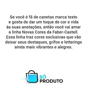 Em resumo, a caneta marca texto faber-castell super fluorescente é uma ótima escolha para quem busca um produto de alta qualidade, durabilidade, eficiência e conforto. Com ela, você pode destacar textos, sublinhar linhas e fazer anotações de forma eficaz e confortável, deixando sua rotina de trabalho ou estudo muito mais produtiva e prazerosa.