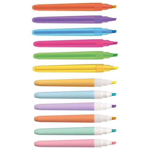 As cores neon incluem Amarelo, Verde, Laranja, Rosa, Azul e Roxo, perfeitas para dar um toque de energia e vitalidade às suas marcações. Já as cores pastel, como Verde pastel, Roxo pastel, Laranja pastel, Amarelo pastel, Azul pastel e Rosa pastel, trazem uma suavidade elegante, ideal para um destaque mais discreto e refinado.