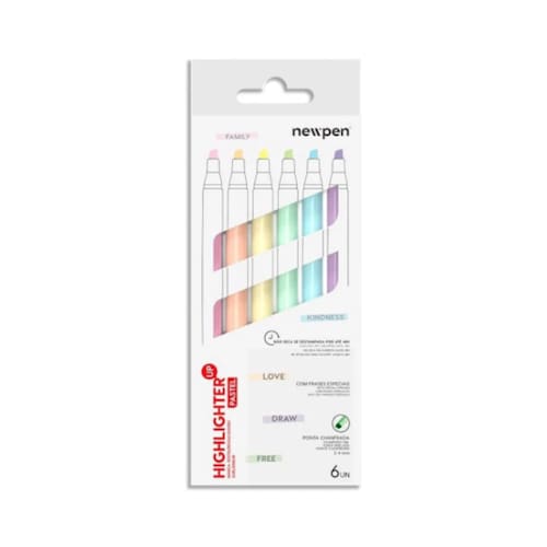 - 6 cores pastel; - Formato slim que cabe em qualquer estojo; - Composição: componentes termoplásticos, tinta à base de água; - Tecnologia anti ressecamento até 48h; - Ponta: 2-4mm; - INMETRO: 005157/2022.
