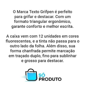 Descrição Com o Kit de 12 Marca Textos Pastel Grifpen Faber castell, você pode escrever com estilo e criatividade. As cores pastel são perfeitas para destacar suas informações importantes de forma discreta. A ponta chanfrada permite traços finos e grossos a depender da posição em que a ponta é colocada no papel. O formato triangular garante maior conforto ao escrever e a tinta não passa para o outro lado da folha. Ideal para usar na escola, universidade ou no escritório.