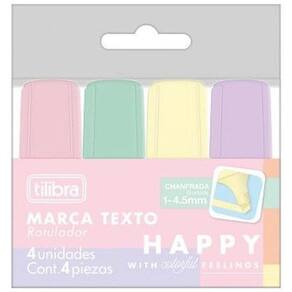 Marca Texto Tilibra Happy 4Un. O Marca-Texto Mini Happy é prático para uso diário, possui ponta chanfrada e cor pastel, sendo perfeito para marcar e destacar trechos importantes de um texto de uma forma mais sofisticada. Ideal para ser Utilizado na escola, escritório e em casa. Detalhes Alta qualidade Cor: Pastel Maior resistência e durabilidade Não toxico Ponta: chanfrada Produto certificado: INMETRO Quantidade: 4 Traço 1mm / 4.5mm Formato: 27mm x 105mm