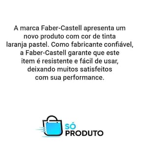 A marca faber-castell apresenta um novo produto com cor de tinta laranja pastel. Com apenas um item, este produto tem um peso de 0,05 quilogramas e medidas de 7 x 1 x 1 cm com 50 g. Como fabricante confiável, a faber-castell garante que este item é resistente e fácil de usar, deixando muitos satisfeitos com sua performance. A cor laranja pastel adiciona um toque de cor aos seus trabalhos e é perfeita para chamar atenção. Não perca a oportunidade de experimentar este novo produto top da faber-castell. As imagens são meramente ilustrativas