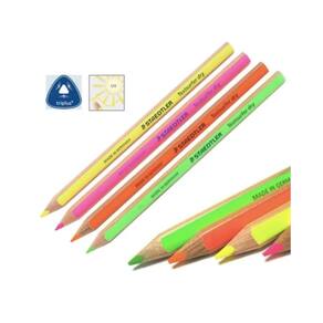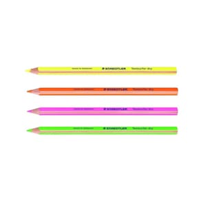- Lápis marca-texto seco com cera translúcida triangular ergonômico jumbo; - Sem trespassar através de papel fino, por ex. jornais, passagens da bíblia; - INK°JET SAFE – não mancha as impressões a jato de tinta; - 4 cores neon; - Madeira de florestas geridas de forma sustentável certificadas pelo FSC.