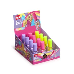 - Design: formato de esmalte, cores vibrantes e detalhes inspirados na Barbie; - Material: plástico resistente e ponta de feltro; - Tinta: à base d'água, com secagem rápida e cores vibrantes.