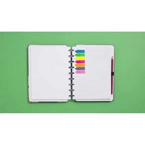Marcador Adesivo Caderno Inteligente 140Un. Obs.: Por se tratar de um produto artesanal, a tonalidade pode variar um pouco. : Sabe aquele assunto importante que merece um destaque especial ; O Marcador Adesivo Inteligente é compatível com todos os tamanhos de caderno da marca e veio trazer ainda mais praticidade e estilo para o seu Caderno Inteligente®. Contém: 7 blocos com 20 folhas adesivas cada, totalizando 140 folhas. Tamanho: 12.7mm x 44mm Obs: Os cadernos das fotos são meramente ilustrativos. Ean: 7895099711530