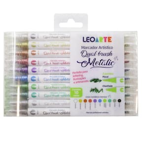 Componentes: Estojo com 10 marcadores artísticos dual brush metálicos