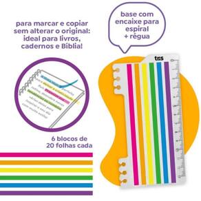 Fácil aplicação Marcador de linhas Tom neon Base com encaixe para espiral e régua Aceita escrita Contém 120 folhas Reposicionável Marca: Não Informado