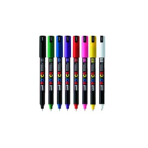 Canetas de pintura com marcador permanente Posca PC-1MR. Ponta ultrafina para arte e artesanato. Uso de várias superfícies em madeira, metal, papel, tela, papelão, tecido de vidro, cerâmica, seixo, porcelana. Conjunto de 8 cores padrão