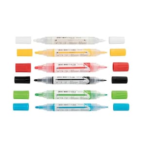 - Contém 6 marcadores permanentes nas cores: preto, branco, amarelo, verde, vermelho e azul