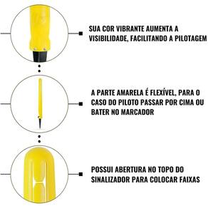 Produzido em polímero de alta resistência, este marcador possui uma parte amarela flexível que resiste a impactos, caso o piloto passe por cima ou bata acidentalmente.