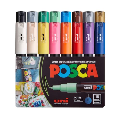 16 marcadores Posca - Suprimentos de arte para pintura rupestre, arte em tecido e muito mais - Canetas de pintura para escolas e artesanato -