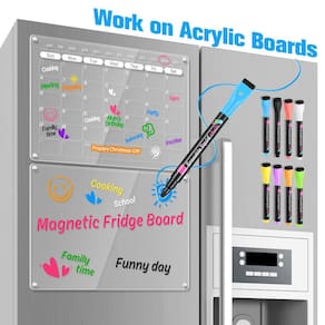 Esses marcadores magnéticos apagáveis a úmido e marcadores de giz líquido apagáveis a úmido são especialmente projetados para quadro de acrílico apagável a seco, calendário de acrílico para geladeira, quadro branco transparente de geladeira, calendário de parede de vidro ou quadro apagável a seco, quadro de giz, quadro de sinalização do primeiro dia de aula, quadro de sinalização do último dia de aula, quadro de boas-vindas de volta à escola/fora da faculdade, quadro de sinalização do primeiro dia de aula. NOTA: as placas de acrílico ou placas de giz não estão incluídas na embalagem.