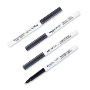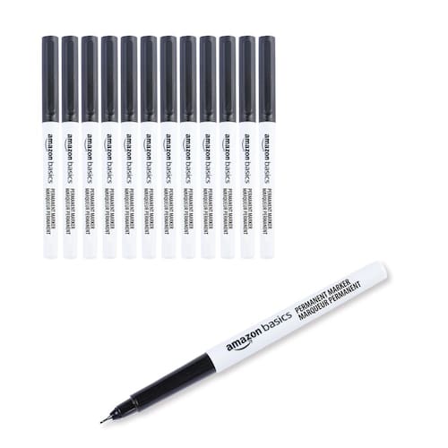 Amazon Basics Marcadores permanentes de ponta ultrafina, preto, pacote com 12 - Marcador permanente (pacote com 12) com tinta preta ousada; ideal para casa ou escritório, seja escrevendo, rabiscando ou desenhando - Ponta ultrafina para delineamento e detalhes de alta precisão; sem pular ou vazar para resultados suaves e limpos - Tinta de longa duração, secagem rápida; à prova de manchas e resistente ao desbotamento - Funciona em praticamente qualquer superfície, incluindo fotos, plástico, madeira, pedra e metal - Não tóxico; em conformidade com ASTM-D4236