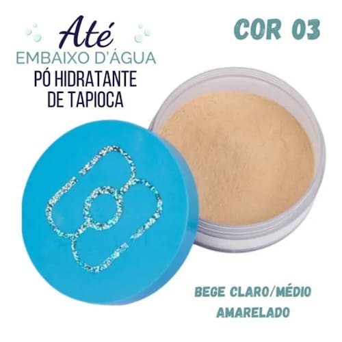 O Pó Hidratante de Tapioca Até Embaixo D’água já diz a que veio! Ele tem uma fórmula super especial, enriquecida com ÁCIDO HIALURÔNICO, que evita o ressecamento da pele e tem efeito prolongado, o que vai deixar um lindo acabamento na sua pele. A estrela desse pó é, claro, o AMIDO DE TAPIOCA! Que matifica a pele, sem retirar o viço natural da pele que tanto amamos.Calma que ainda não acabou!Este pó solto ainda deixa a make super resistente e a prova de atrito, é ultra fino, deixa acabamento super natural, tem efeito SOFT FOCUS que diminui aparência de olheiras e texturas, tem acabamento hidratante com ácido Hialurônico, não marca as linhas de expressão e até mesmo diminui a aparência delas!Ahh! E claroooo, como todos os produtos da coleção Até Embaixo D’água, este super lançamento também é completamente à prova d’água!