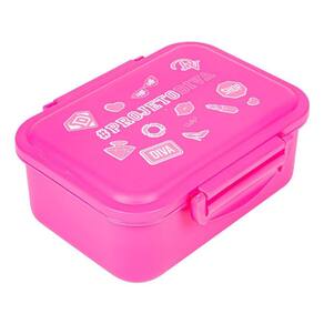 Contém: 1 pote com capacidade de 1,3l, 1 pote removível com divisória e capacidade de 480ml, 1 tampa com duas travas laterais.