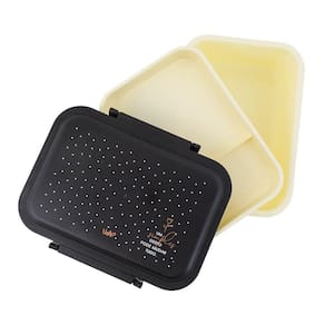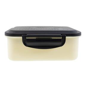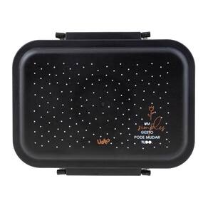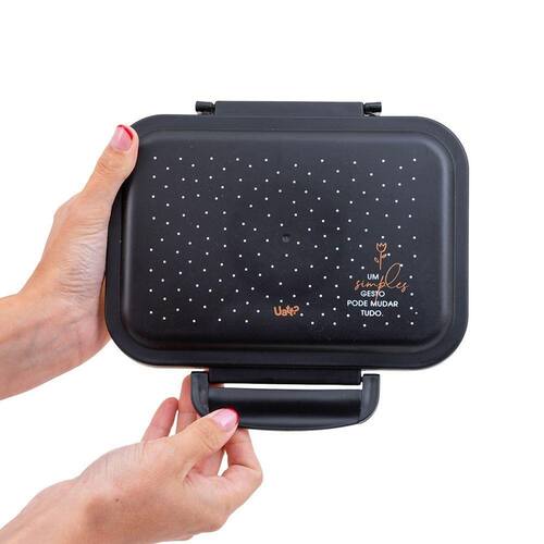 Contém: 1 pote com capacidade de 1,3l, 1 pote removível com divisória e capacidade de 480ml, 1 tampa com duas travas laterais.