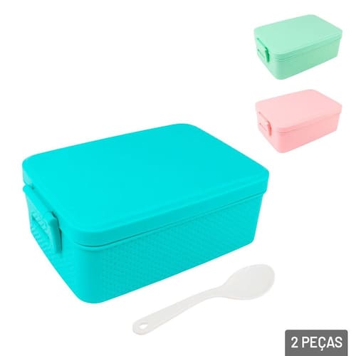 Marmita de Plástico 2 Pçs com Trava e Colhe Leve suas refeições com mais organização, segurança e estilo com esta prática marmita de plástico com 2 compartimentos, travas de segurança e colher colorida inclusa. Ideal para o dia a dia no trabalho, escola, faculdade ou passeios, ela mantém os alimentos bem armazenados e separados, garantindo uma refeição fresca a qualquer hora.\nEvita vazamentos e abre facilmente, garantindo segurança no transporte, Acompanha talher próprio, encaixado na tampa, com cores vibrantes e divertidas. Feita em plástico de alta qualidade, livre de BPA, segura para alimentos e ideal para uso diário.\nDisponível em cores .\nMarmita de Plástico na Nipo Center. Possuímos a maior variedade de produtos a pelo menor preço. Entregamos para todo Brasil! Confira e se surpreenda!