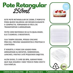 Pote Retangular 250ml tornando sua rotina mais ágil, aumentando a vida útil de alimentos.