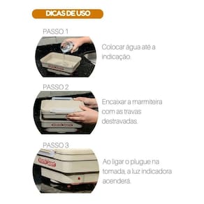Marmita Elétrica Light Automática Aquecimento a Vapor BivoltApresentamos a Marmita Elétrica Marmi Quent Light que é indicada para pessoas que consomem um volume menor de comida, porém não abre mão de uma saladinha, um acompanhamento ou uma sobremesa. A Marmi Quent é prática, funcional e muito higiênica, pois aquece o alimento á base de vapor e individualmente. Basta colocar um pouco de água até o nível indicado , ligar na tomada e prontoO Aquecedor da marmita utiliza o sistema a vapor, onde o sabor, a textura e as qualidades dos alimentos são preservados, proporcionando uma refeição mais saudavel e sem riscos para sua saúde . Foi projetada para o seu conforto, solucionando o problema de aquecimento individual de marmita no seu ambiente de trabalho, seja por falta de locais adequados, má qualidade, falta de higiene no preparo, alto custo entre outro fatores.Não importa a voltagem , pois a Marmi Quent Light é Bivolt automático, pode ser ligada na tomada 127 v ou 220 v.Características- Dimensões do produto: 13 x 12,2 x 19 cm- Peso bruto: 528 g - Potencia média 180 watts- Capacidade da marmiteira: 560 ml- Capacidade da saladeira : 460 ml- Matéria : Polipropileno - Livre de Bisfenol - Voltagem : Bivolt- Certificação do INMETRO : BRA20/00501Dimensões- Altura : 12,2 cm- Comprimento: 19 cm- Largura : 13 cm