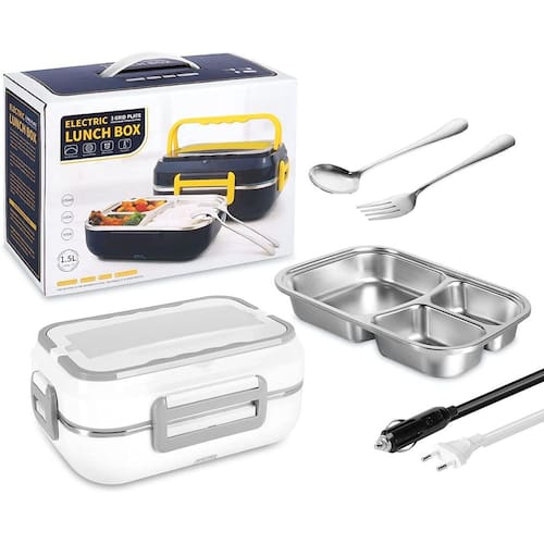 Marmita elétrica interior alumínio 110v / 12v carro e tomada Marmita elétrica 1,5 litros para carro e tomada 110v Foi projetada para solucionar o problema de aquecimento individual de alimentos no seu ambiente de trabalho. Com lindo designer e elétrica, você consegue conservar sua comida e esquenta-la com praticidade e rapidez. Características: Trava nas laterais para que a tampa fique bem fixa e fechada Repartições para separação de alimentos Suporte talher Voltagem: 110v e 12v carro Cor: branca, preto Aquecimento 40w Peso: 920 gramas Capacidade : 1,5 l Compartilhamento solto em alumínio para que possa ser lavado Dimensões: Tamanho: 22cm x17cm x 11cm Tempo para esquentar a comida: de 15 a 30 minutos dependendo da comida que estiver na marmita. Itens inclusos: 01 - lunch box com 3 repartições 01 - talher inox 01 - cabo tomada 110v 01 - cabo 12v carro