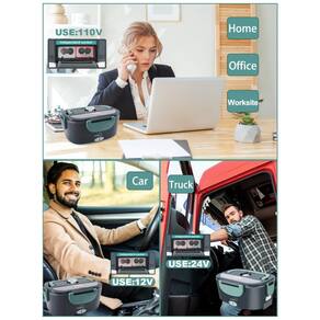 Lancheira elétrica 3 em 1 Em vez de comer fast food e sanduíches frios não saudáveis todos os dias, esta lancheira elétrica aquecida suporta 110 230V casa, escritório 12V carro e uso de caminhão 24V. motoristas de carro , caminhoneiro podem comer refeições quentes caseiras de forma saudável em movimento, trabalhadores da construção civil e trabalhadores de escritório podem desfrutar de refeições quentes no canteiro de obras ou no escritório.