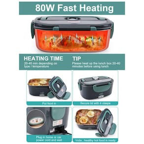 Aquecimento rápido de 80 W Adota o mais recente aquecimento de temperatura constante PTC projetado e usa alta potência de 80 W. Ciclo térmico de baixo consumo e alta eficiência, aquecendo seu almoço na velocidade mais rápida, mantendo a umidade e o frescor dos alimentos . Não há mais necessidade de comer sanduíches pouco saudáveis e fast food. Você pode comer comida caseira fresca e quente no menor tempo possível no escritório e no canteiro de obras Uma forma saudável de comer.
