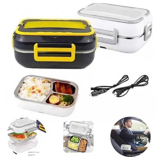 Trava nas laterais para que a tampa fique bem fixa e fechada, Repartições para separação de alimentos, Suporte talher, Material: plástico pp de grau alimentício e aço inoxidável 304, Dimensões: 22cm x 17cm x 11cmLâmpada piloto