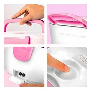 Design compacto e eficiente, permite o transporte e o aquecimento de alimentos com facilidade, mantendo sabor e nutrientes intactos. Aquece os alimentos em poucos minutos. Fácil de operar e limpar. Compartimento externo de plástico transparente removível. Parte interna de alumínio. Equipada com 2 compartimentos móveis de plástico transparente para separar diferentes tipos de alimentos. Tampa com 4 travas.Lâmpada piloto