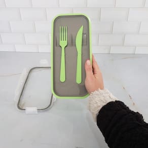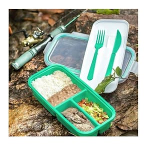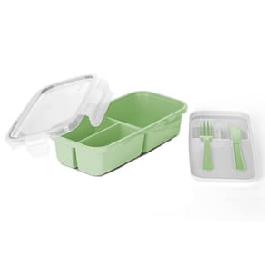 Marmita Hermética Verde com Garfo e Faca 1,2L Pote com Divisórias Tampa Plástico