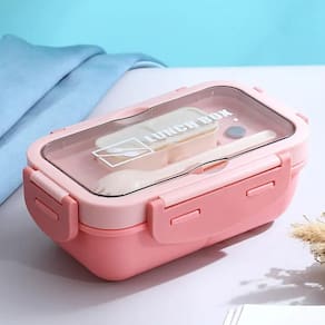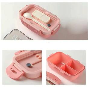 Marmita Lancheira com 3 divisoria e talher com armazenado de molhos De facil transporte para comidas, frutas, biscoitos e pães, para te acompanhar no trabalho, escola... Tamanho: Comprimento: 20cm Largura: 13cm Altura: 7 cm Material: Plastico Suporta: 20c a 100c sem a tampa Embalagem contém: 1 Marmita 1 Talher 1 Armazenador de molhos DE 30 DIAS