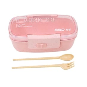 Marmita Pote 650ml com Tampa, Garfo e Colher Micro-ondas e Freezer Fit Rosa