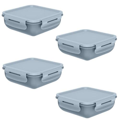 - 04 Marmita Hermética OU Quadrada Bicolor Azul Fechada