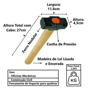 Marreta Cabo de Madeira Lixado Encerado Cunha Pressão 1500g, é uma ferramenta maior e mais pesada do que um martelo comum. É utilizado por quem precisa de força para quebrar ou demolir uma superfície. Sempre possui uma cabeça de ferro para causar ainda mais impacto.