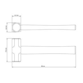 Para mais qualidade ao quebrar paredes, a Marreta Oitavada 5000 g Tramontina Basic com Cabo de Madeira é a escolha certa. Uma ferramenta de 5000 gramas, que é ideal para trabalhos pesados na construção civil. Altamente resistente, é produzida com cabeça em aço especial e cabo em madeira, que leva mais segurança ao manuseio, já que é fixado à cabeça ao cabo por cunha metálica. Uma ferramenta de alto desempenho para auxiliar você a executar o seu trabalho! Orientações Cabeça forjada e temperada em aço especial, garantindo grande resistência ao produto.Perfeito balanceamento entre cabeça e cabo para aumentar o conforto e a segurança do usuário.O sistema de fixação da cabeça ao cabo por cunha metálica ajuda a aumentar a segurança do usuário.Acabamento jateado e cabeça envernizada oferecendo proteção contra oxidação.As marretas são submetidas a um processo localizado de têmpera para se obter uma dureza adequada na base de impacto que suporte o uso contínuo por longo períodos. Observações Use óculos, luvas e outros equipamentos de proteção individual (EPIs) de acordo com a tarefa a ser executada.Nunca golpear martelos e marretas de aço contra superfícies de dureza superior a 45 HRC. Tal procedimento pode ocasionar estilhaçamento ou lascas, comprometendo a segurança do usuário.Nunca alterar as características originais da ferramenta (troca de cabos, esmerilhagem da cabeça, etc.)Nunca utilize um martelo com: desgaste excessivo, cabo solto ou danificado, cabeça com rebarbas ou trincas. Nesses casos, faça a substituição do produto. Nunca realize modificações no produto, como solda na cabeça ou troca de cabo. Nunca golpeie um martelo contra o outro. Utilize sempre as faces de impacto para realizar o golpe. Nunca golpeie com as laterais, pois a têmpera está localizada somente nas faces de golpe. Observe sempre as aplicações de cada tipo de martelo antes do uso. Armazene em local limpo e seco. Características Gerais EAN13 7891114114089 DUN14 17891114114086 NCM 8205.20.00 Peso Líquido 5,4000 kg. Peso Bruto 5,6500 kg. Metragem 0,013394 m³. Dimensões Embalagem (Compr. X Larg. X Alt.) 905x 185x 80 mm. Dimensões Produto (Compr. X Larg. X Alt.) 900x 175x 63 mm. Dimensão Extra A 175,0 mm. Dimensão Extra B 900,0 mm. Dimensão Extra C 63,0 mm. Dimensão Extra D 61,0 mm.