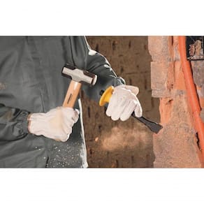 Modo de uso: ;Use óculos, luvas e outros equipamentos de proteção individual (EPIs) de acordo com a tarefa a ser executada. Nunca golpear martelos e marretas de aço contra superfícies de dureza superior a 45 HRC. Tal procedimento pode ocasionar estilhaçamento ou lascas, comprometendo a do usuário. Nunca alterar as características da ferramenta (troca de cabos, esmerilhagem da cabeça, etc.) Nunca utilize um martelo com: desgaste excessivo, cabo solto ou , cabeça com rebarbas ou trincas. Nesses casos, faça a substituição do produto. Nunca realize modificações no produto, como solda na cabeça ou troca de cabo. Nunca golpeie um martelo contra o outro. Utilize sempre as faces de impacto para realizar o golpe. Nunca golpeie com as laterais, pois a têmpera está localizada somente nas faces de golpe. Observe sempre as aplicações de cada tipo de martelo antes do uso. Armazene em limpo e seco.
