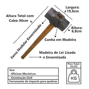 Marreta Premium Cabo de Madeira Envernizada Cunha Aço 500g, é uma ferramenta maior e mais pesada do que um martelo comum. É utilizado por quem precisa de força para quebrar ou demolir uma superfície. Sempre possui uma cabeça de ferro para causar ainda mais impacto.